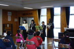 音楽部の生徒のリズムに乗った楽器演奏や響きのある歌声に聞き入ったひとときとなりました。