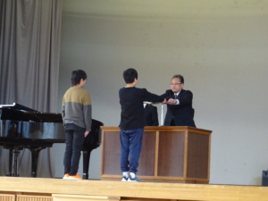 3月16日3学期終業式の後、6年生の前期課程修了式が行われました。